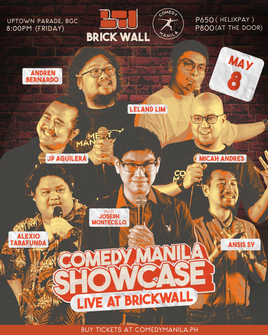 Brick Wall BGCTicket: P650 (Helixpay) | P800 (at the door) May 8, 2026 | 8:00 PM | Brick Wall, BGC BUY TICKET
